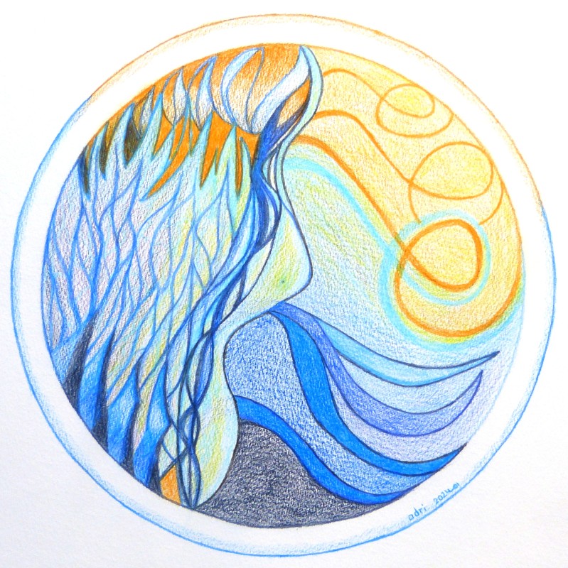 Deze workshop gaat over de functies van de herfst > Loslaten van wat geweest is en toeleven naar wat nog komen gaat. De herfst staat op de drempel tussen afscheid nemen van de zomer en voorbereiden op de winter. De herfst houdt ons daarmee een spiegel voor. Als wij van de ene naar de andere activiteit gaan is het handig om even een pas op de plaats te maken > nagaan wat niet meer nocig is om verder mee te nemen én regelen wat je meeneemt naar volgende. De stap op de plaats bij deze drempel en de keuze die je maakt zorgt ervoor dat veranderingen minder omrust met zich meebrengen. Bewust loslaten staat dan ten dienste van komende nieuwe fase(n).De mandala die ik hierbij opgenomen heb laat mijn creatie van loslaten zien: vanuit een vol hoofd, met vloeiende lijnen een nieuwe meer open ruimte ingaan.